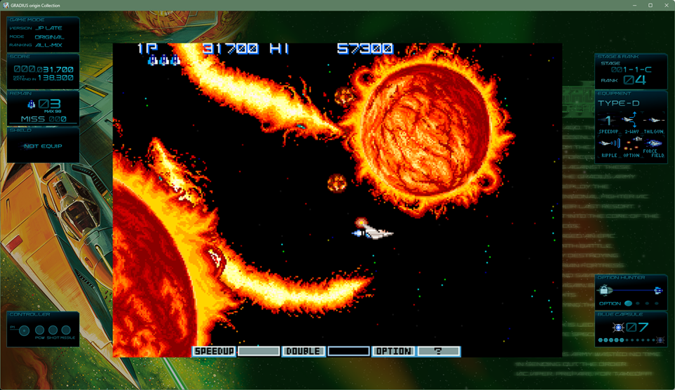 現在も購入できる3種のグラディウスIIのデフォルトでは、その「カバード・コア」は横に少し圧縮されていて縦長になってしまっていてカバーが正円状に回る演出からズレしてしまっている。